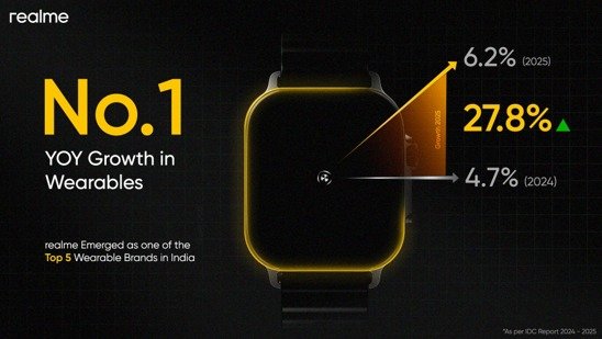 realme ने 27.8% वेयरेबल्स वृद्धि दर्ज की, 4% बाजार गिरावट के बीच YoY वृद्धि में #1 ब्रांड के रूप में उभरा