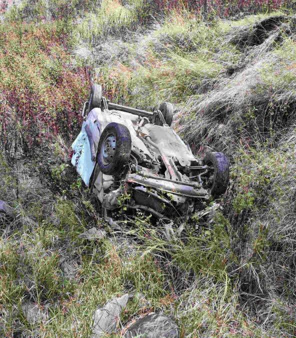 कार खाई में गिरी, रिटायर्ड शिक्षक की मौत, पुत्रवधू गंभीर