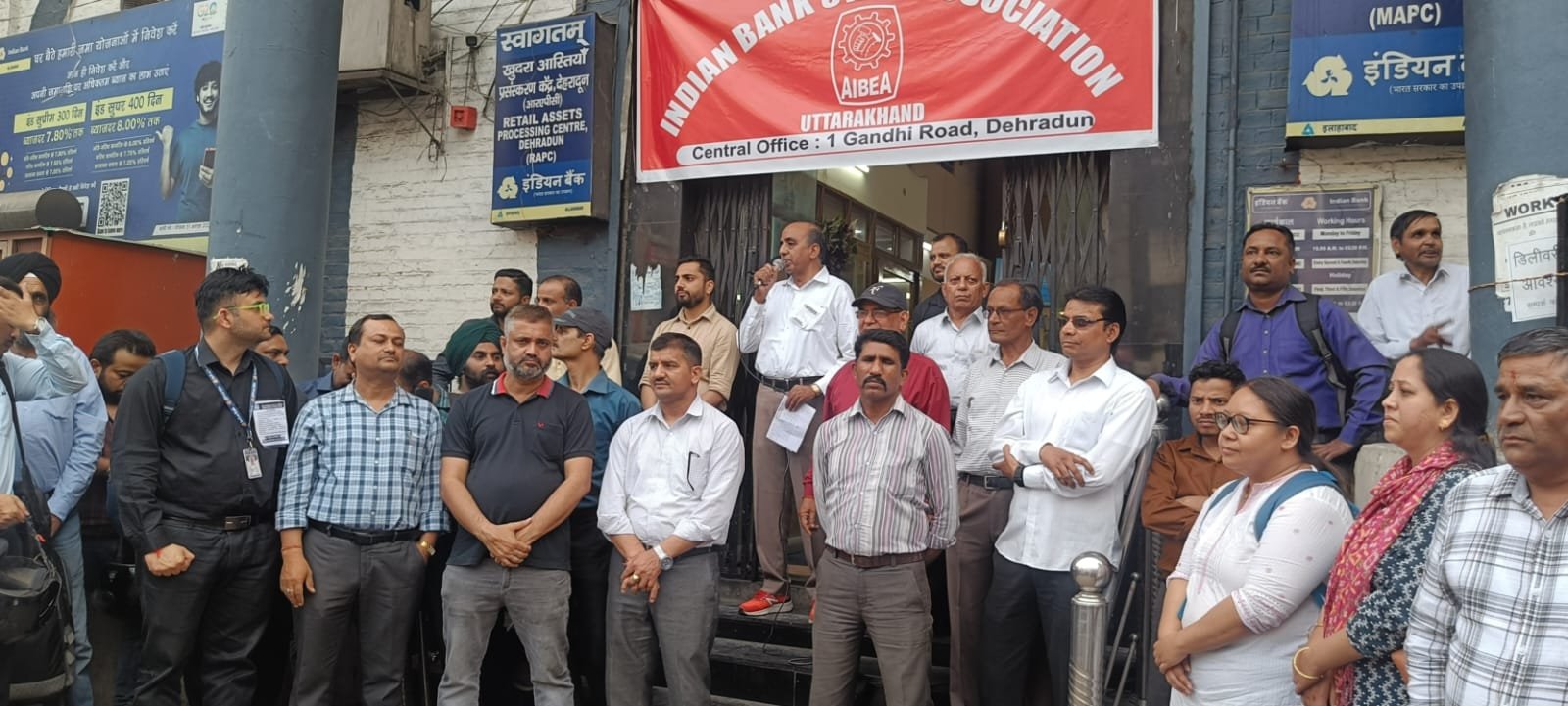 इंडियन बैंक स्टाफ एसोसिएशन उत्तराखण्ड ने उत्तरांचल बैंक इम्प्लाईज यूनियन उत्तराखण्ड के सहयोग से किया विशाल प्रदर्शन का आयोजन