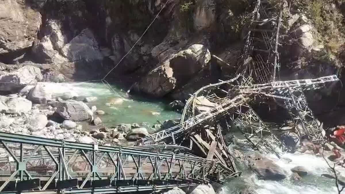 तेज आंधी तूफान में एक बार फिर अलकनंदा पर बना पुल टूटा