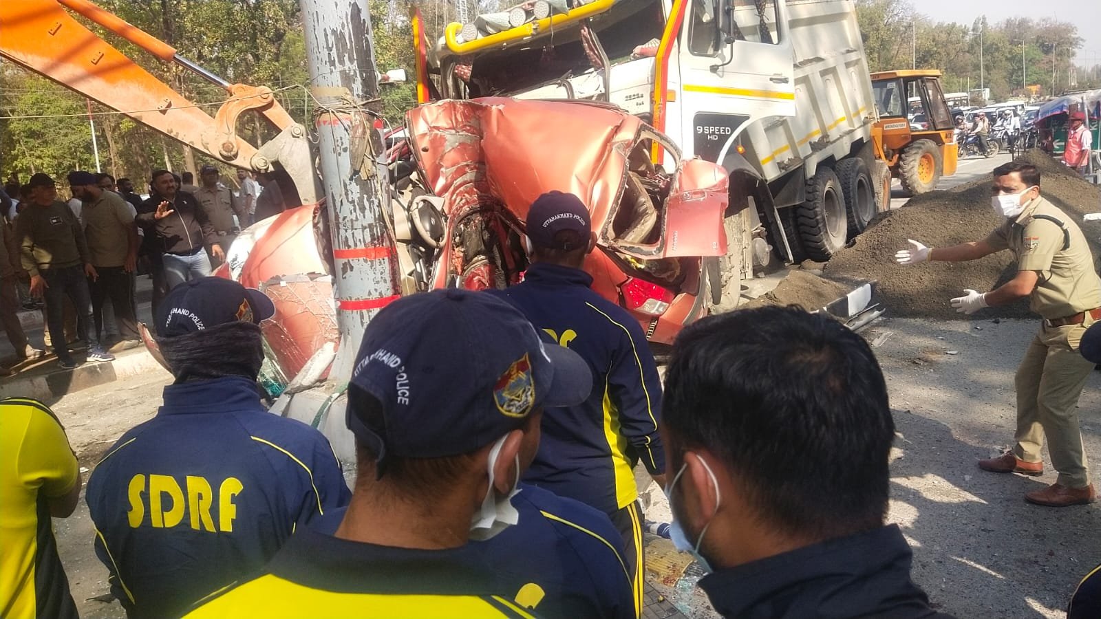 लच्छीवाला टोल प्लाजा पर डंपर ने तीन कारों को मारी टक्कर, दो की मौत