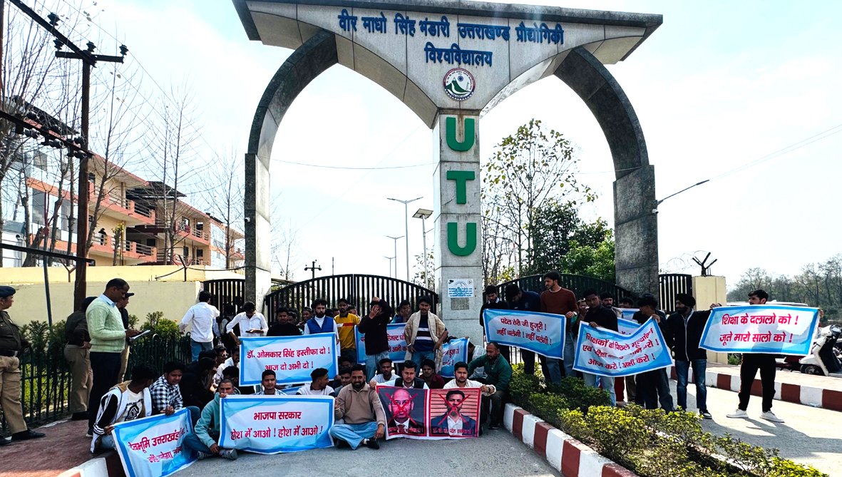 UTU कुलपति डॉ. ओंकार सिंह एवं परीक्षा नियंत्रक डॉ. वी के पटेल की तत्काल बर्खास्तगी की मांग को लेकर छात्रों का शांतिपूर्ण धरना