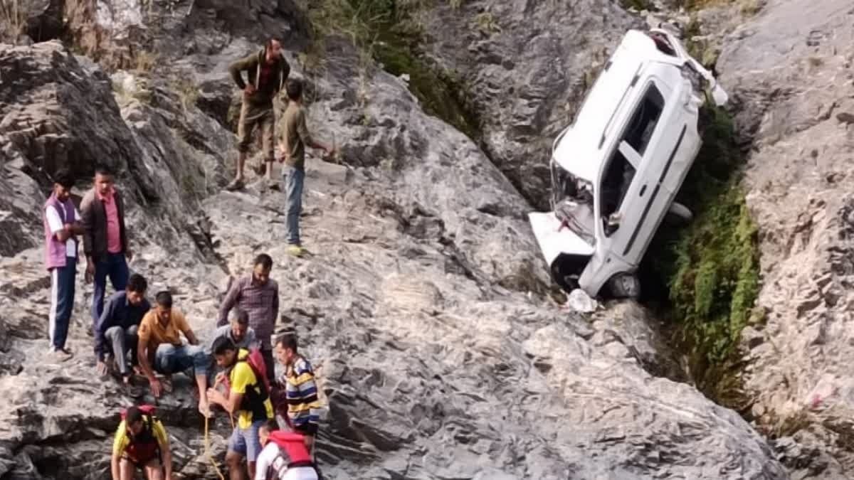 खाई में गिरी, एक की मौत, तीन घायल