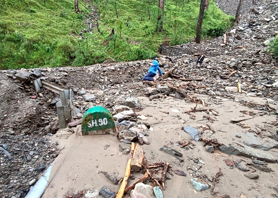 रुद्रप्रयाग में केदारनाथ एनएच पर ढहा पहाड़