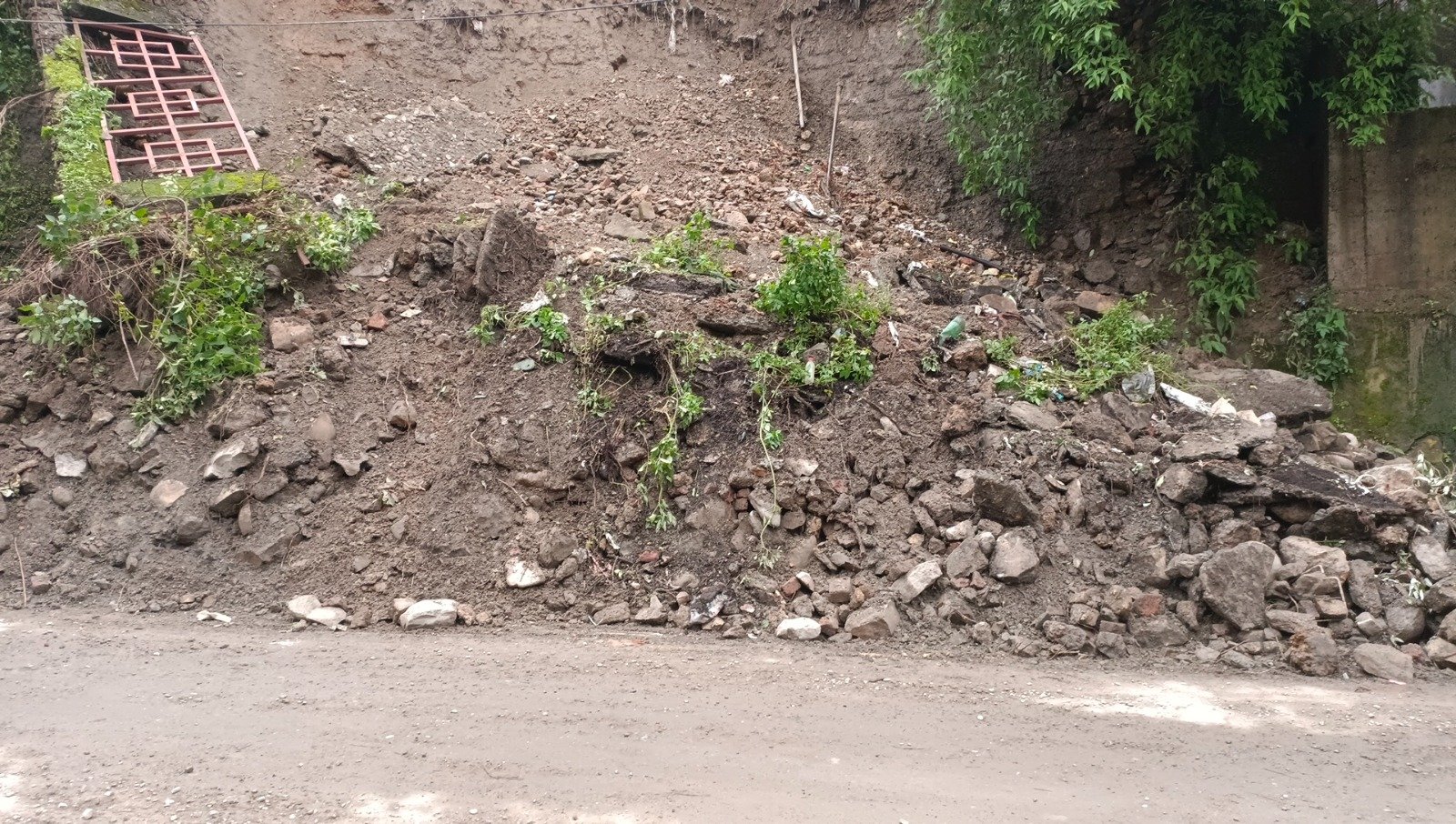 MG PG College के सड़क किनारा भूस्खलन होने से पुश्ता गिरा