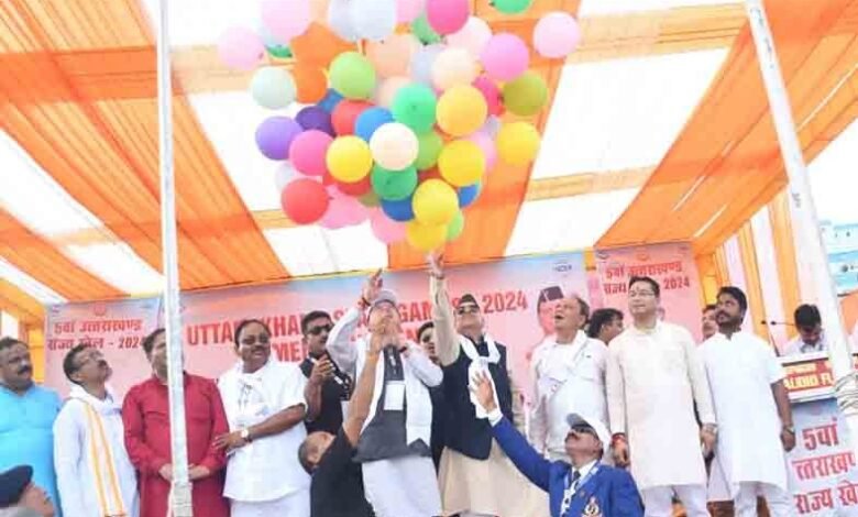 देहरादून । मुख्यमंत्री पुष्कर सिंह धामी ने शनिवार को मनोज सरकार स्पोर्ट्स स्टेडियम रुद्रपुर में 27 सितम्बर तक आयोजित होने वाले पंचम राज्य ओलंपिक खेलों का विधिवत शुभारंभ किया। मुख्यमंत्री के हेलीपैड से रोड शो के दौरान स्टेडियम पहुंचने पर खिलाड़ियों ने पुष्प वर्षा कर मुख्यमंत्री का स्वागत किया। मुख्यमंत्री ने राष्ट्रीय एवं ओलंपिक ध्वज फहराकर विभिन्न जनपदों से आये खेल दलों के मार्चपास्ट की सलामी ली तथा शुभांकर व मैडल का अनावरण कर खेलों का विधिवत शुभारम्भ किया।