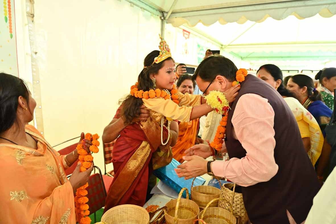 रुद्रप्रयाग/देहरादून । हिंदू धर्म के पवित्र शारदीय नवरात्रि पर्व इन दिनों चल रहे हैं। घर एवं मंदिरों में मां भगवती का पूजन चल रहा है, ऐसा ही कुछ नजारा रुद्रप्रयाग में आयोजित लखपति दीदी अभियान- शक्ति का सम्मान कार्यक्रम में देखने को मिला। यहां महिला समूहों द्वारा लगाए गए स्टॉल्स में कन्याएं मां दुर्गा के रूप में थीं। स्टालों पर मुख्यमंत्री ने कन्याओं से आशीर्वाद लेकर उन्हें उपहार भेंट किए।