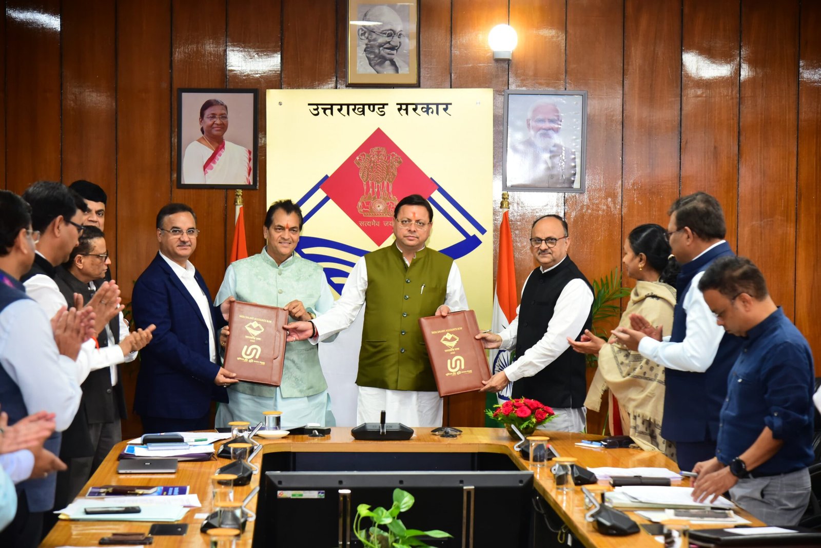 देहरादून। मुख्यमंत्री पुष्कर सिंह धामी एवं वित्त मंत्री प्रेमचंद अग्रवाल की उपस्थिति में बुधवार को सचिवालय में सरकारी कार्मिकों के लिए कॉरपोरेट सैलेरी पैकेज और अन्य लाभों के लिए उत्तराखण्ड सरकार के साथ भारतीय स्टेट बैंक, बैंक ऑफ बड़ौदा, यूनियन बैंक ऑफ इंडिया, केनरा बैंक और जिला सहकारी बैंक ने एम.ओ.यू किया। अभी राज्य के लगभग 64 प्रतिशत सरकारी कार्मिक जिनका सैलरी खाता इन बैंकों में है, वे इस अनुबंध से लाभान्वित होंगे।