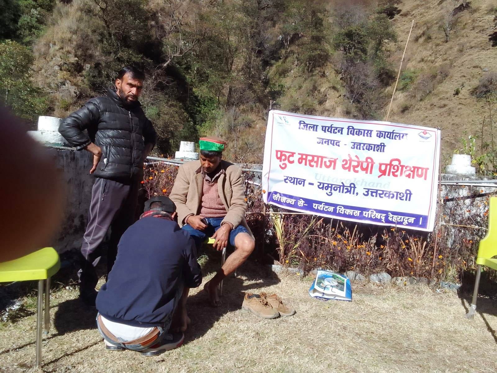 देहरादून। चारधाम यात्रा और प्रदेश में चयनित ट्रेकिंग ट्रैक्शन सेंटर के पास रोजगार के अवसर सृजित करने के उद्देश्य से उत्तराखंड पर्यटन विकास बोर्ड (यूटीडीबी) की ओर से यमनोत्री और रुद्रप्रयाग में स्थानीय निवासीयों को रिफ्लेक्सोलॉजी (पैरों की थेरपी) का विशेषज्ञों द्वारा प्रशिक्षण दिया जा रहा है। यह निशुल्क प्रशिक्षण कार्यक्रम माता वैष्णो देवी श्राइन बोर्ड जम्मू, कटरा के चार विशेषज्ञ दे रहे हैं। यमनोत्री प्रशिक्षण कार्यक्रम में करीब 75 से अधिक स्थानीय निवासियों को प्रशिक्षण दिया जा रहा है। इससे पूर्व पर्यटन मंत्री श्री सतपाल महाराज ने प्रशिक्षण कार्यक्रम का 23 नवंबर को शुभारंभ किया था।
