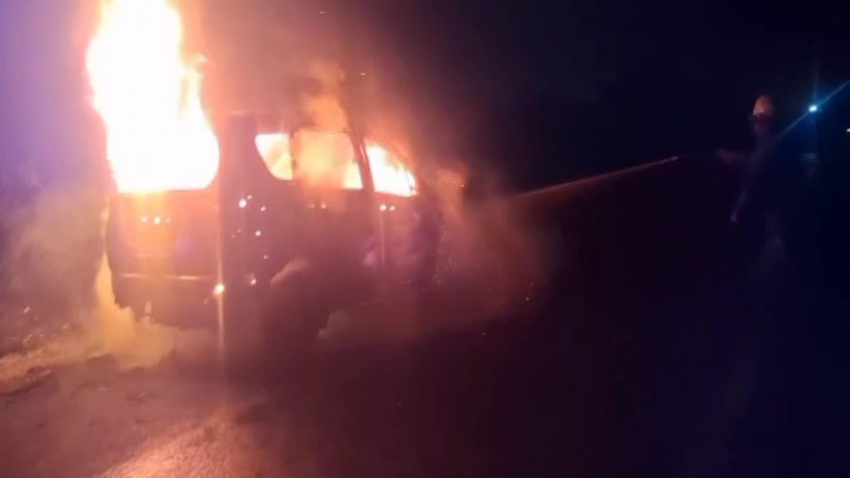 चलती कार में लगी आग, चालक ने कूद कर बचाई जान