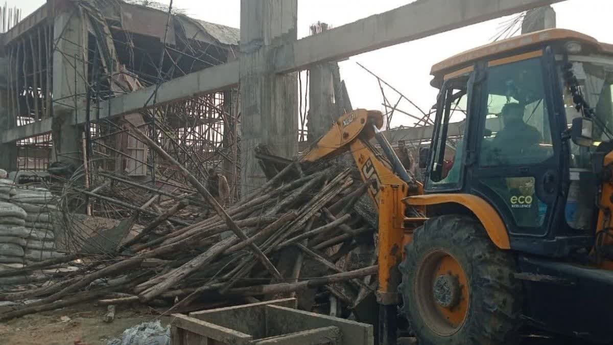 कन्नौज । रेलवे स्टेशन के पास अमृत भारत योजना के तहत बन रही बिल्डिंग में शनिवार को एक बड़ा हादसा हो गया। दोपहर करीब 2।20 बजे में बिल्डिंग का लेंटर अचानक गिर गया। हादसे के बाद मजूदरों में अफरातफरी मच गई। इसमें करीब 25 मजदूर मलबे में दब गए। फिलहाल 6 मजदूरों को निकाल लिया गया है। जबकि अन्य मजदूर अभी फंसे हुए हैं। जेसीबी से राहत बचाव का कार्य लगातार जारी है।