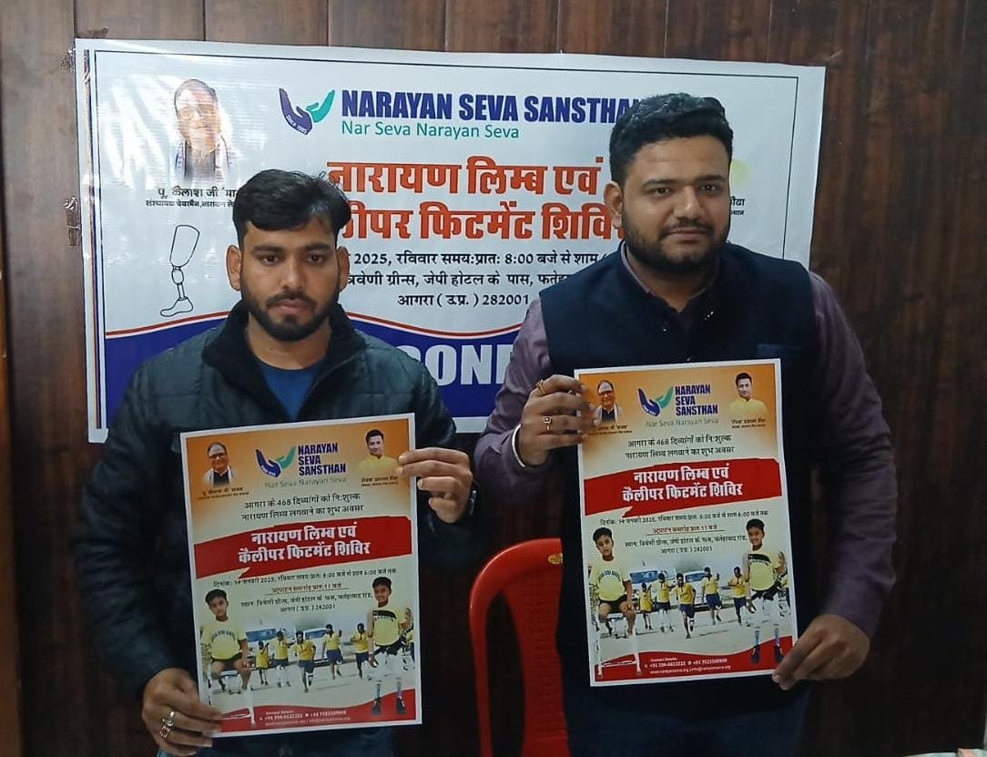 आगरा। देश-विदेश में दिव्यांगजनों और मानव सेवा के लिए पहचाने जाने वाले उदयपुर के नारायण सेवा संस्थान द्वारा उत्तरप्रदेश के दिव्यांगों के सेवार्थ रविवार 19 जनवरी को निःशुल्क नारायण लिम्ब एवं कैलीपर्स फिटमेंट शिविर आगरा में आयोजित होगा। यह शिविर त्रिवेणी ग्रीन्स, जेपी होटल के पास, फतेहाबाद रोड पर 19 जनवरी को प्रातः 8:00 बजे से सायं 5:00 बजे तक चलेगा है। जिसमें पूर्व चयनित दिव्यांगों को नि:शुल्क लाभ मिलेगा।
