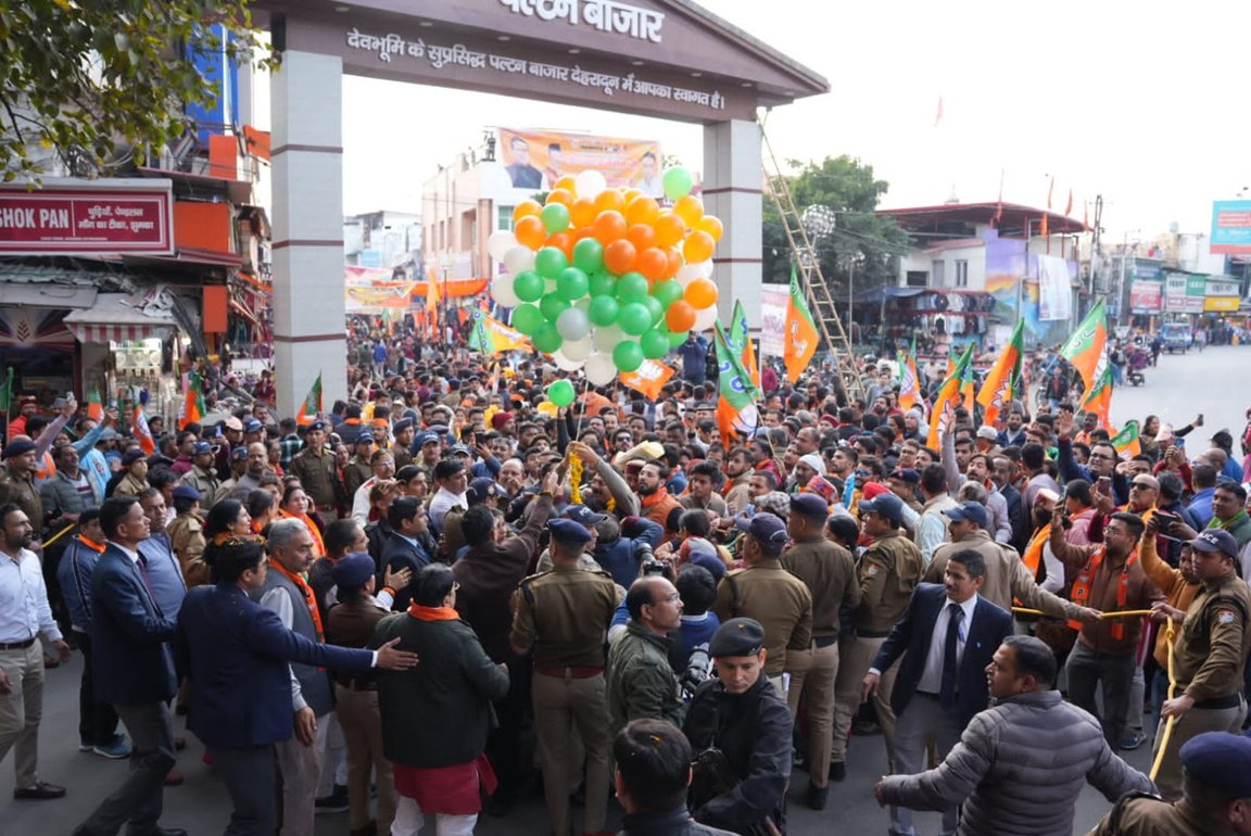 भाजपा मेयर प्रत्याशी सौरभ थपलियाल के रोड शो में उतरा जन सैलाब