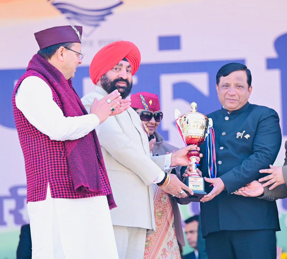 देहरादून। 76वें गणतंत्र दिवस के अवसर पर परेड ग्राउंड में आयोजित राज्य स्तरीय मुख्य कार्यक्रम में 38वें राष्ट्रीय खेल पर आधारित सूचना विभाग की झांकी को प्रथम स्थान मिला। इस झांकी में उत्तराखंड में होने वाले 38वें राष्ट्रीय खेल की विभिन्न प्रतिस्पर्धाओं और उत्तराखंड के पारंपरिक खेल मलखंब को प्रदर्शित किया गया। राज्यपाल लेफ्टिनेंट जनरल गुरमीत सिंह (से. नि.) और मुख्यमंत्री पुष्कर सिंह धामी ने सूचना विभाग की झांकी को प्रथम स्थान मिलने पर महानिदेशक सूचना बंशीधर तिवारी को पुरस्कार प्रदान किया।
