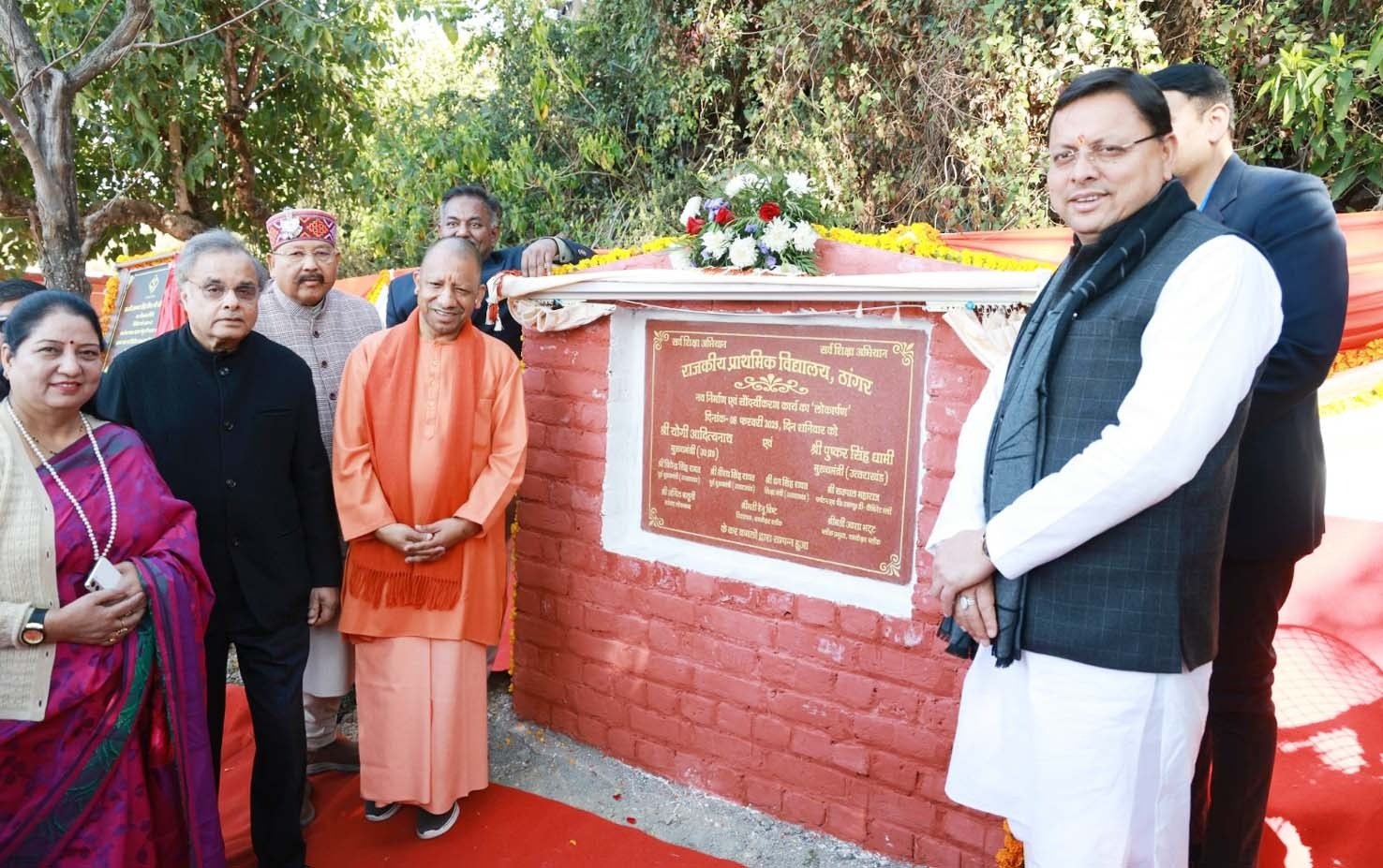 देहरादून। उत्तर प्रदेश के मुख्यमंत्री योगी आदित्यनाथ एवं उत्तराखंड के मुख्यमंत्री पुष्कर सिंह धामी ने शनिवार को पौड़ी जिले के यमकेश्वर विकासखंड के अंतर्गत राजकीय प्राथमिक विद्यालय ठांगर का नव निर्माण, सौंदर्यीकरण कार्य एंव ग्राम पंचुर बारात घर का लोकार्पण किया। इस अवसर पर उन्होंने स्कूली बच्चों के साथ संवाद किया एवं विद्यालय का अवलोकन भी किया। इस दौरान आईजीएल (इंडिया ग्लाइकोल्स लिमिटेड) की वार्षिक पुस्तिका का विमोचन भी किया गया। दोनों मुख्यमंत्रियों ने राजकीय जूनियर हाई स्कूल कांडी व राजकीय प्राथमिक विद्यालय विथ्याणी में भी जाकर विद्यालय का लोकार्पण किया और स्कूल के बच्चों के साथ बातचीत कर विद्यालय का अवलोकन भी किया।