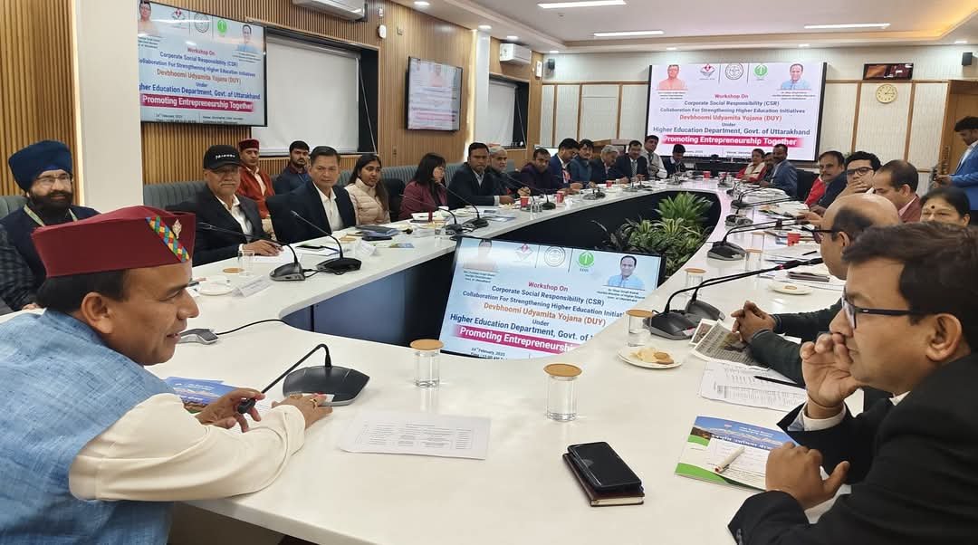 देहरादून। उत्तराखण्ड सरकार और भारतीय उद्यमिता विकास संस्थान, अहमदाबाद के संयुक्त प्रयास से राज्य में उच्च शिक्षा और उद्यमिता विकास के लिए कॉर्पोरेट सोशल रिस्पॉन्सिबिलिटी (सीएसआर) की भूमिका पर एक विशेष कार्यशाला मुख्य सचिव सभागार में आयोजित की गई। कार्यशाला का उद्देश्य सीएसआर के माध्यम से उच्च शिक्षा और उद्यमिता को सशक्त बनाना तथा संस्थागत सहयोग को प्रोत्साहित करना था।