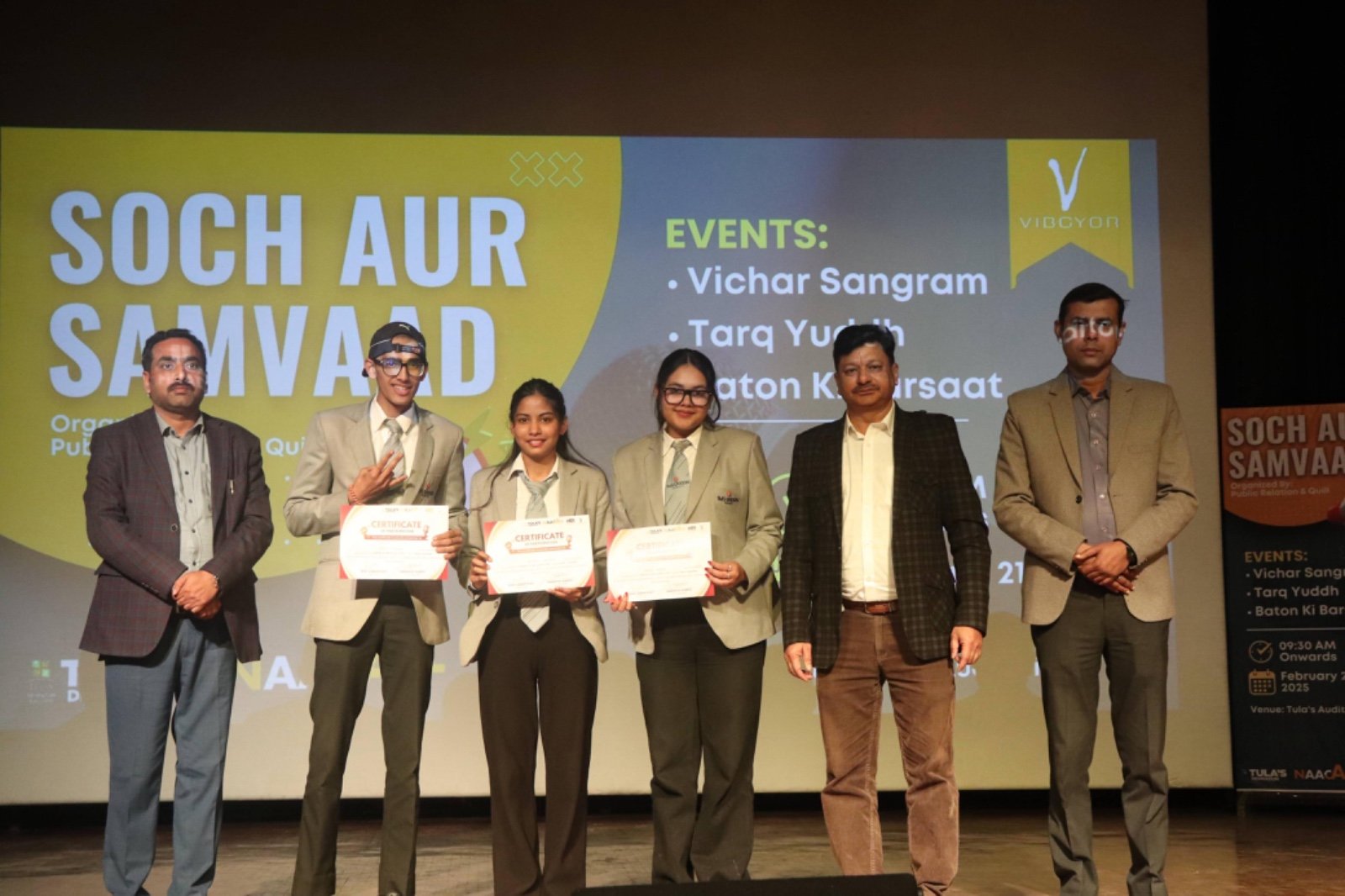 महोत्सव में तीन मुख्य प्रतियोगिताएं आयोजित की गईं – ‘तर्क युद्ध’ (वाद-विवाद प्रतियोगिता), ‘विचार संग्राम’ (समूह चर्चा) और ‘बातों की बरसात’ (ओपन माइक)।