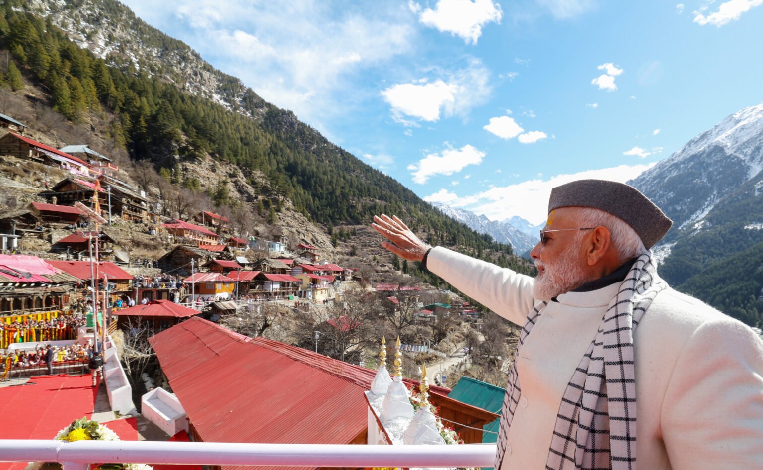 प्रधानमंत्री नरेंद्र मोदी ने अपने संबोधन की शुरुआत गंगा मैया के जयकारों से क, वही वह जब मंच पर पहुंचे तो लोगों ने मोदीकृमोदी की गूंज से पूरे वातावरण को ही गूंजायमान कर दिया। प्रधानमंत्री ने आज यहां एक ट्रैकर्स रैली व वाहन रैली को भी हरी झंडी दिखाई प्रधानमंत्री ने पहाड़ी निवास पहने और ब्रह्मकमल की टोपी भी पहनी। प्रधानमंत्री ने अपने संबोधन में कहा कि 1962 के चीन युद्ध के दौरान दो सीमावर्ती गांवों को खाली कराया गया उन्हें सबने भुला दिया था लेकिन उन्होंने मलिंगा लाल और जनक ताल को फिर आबाद कर दिया है। उन्होंने कहा कि हमने परंपरा को बदला है। अब सीमांत गांव अंतिम नहीं प्रथम गांव होते हैं तथा हमने उनके विकास के लिए वाइब्रेट योजना शुरू की है जिसमें इस क्षेत्र के 8-10 गांव आते हैं। इस अवसर पर पूर्व मुख्यमंत्री से लेकर सांसद तथा राज्य मंत्री भी उपस्थित रहे।