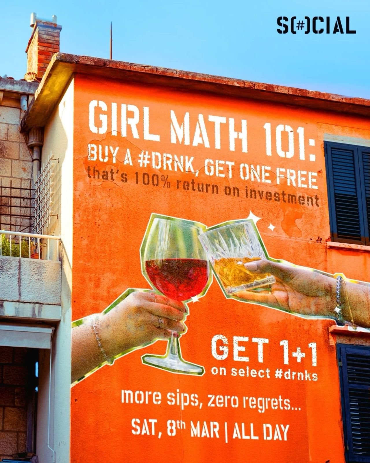 वायरल हो रहे #गर्लमैथ ट्रेंड को अपनाते हुए, सोशल ने खर्चा करने को लेकर एक मज़ेदार दृष्टिकोण पेश किया है—जहां छूट बचत की तरह महसूस होती है और “बाय वन, गेट वन फ्री” ऑफर का मतलब होता है लगभग मुफ्त ड्रिंक्स। सोशल का यह खास ऑफर महिलाओं को एक खूबसूरत पल जीने और इसका पूरा आनंद उठाने के लिए एक खास मौका प्रदान करता है।