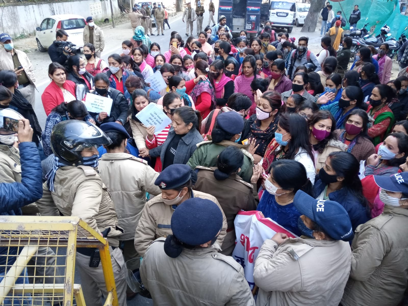 पुलिस कर्मियों के परिजनों ने ग्रेड पे बढ़ाने की मांग को किया जमकर प्रदर्शन