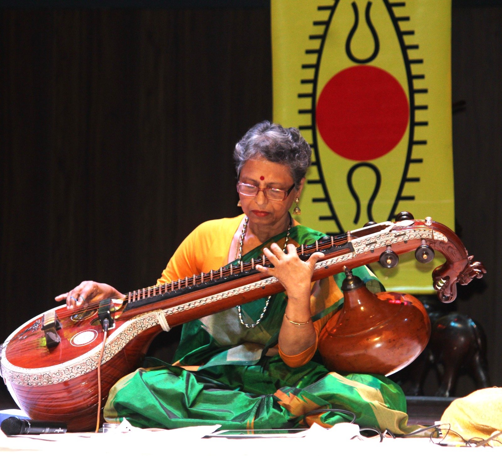 विदुषी सरस्वती राजगोपालन ने सरस्वती वीणा पर अपना वादन प्रस्तुत किया, जो उनकी गहन साधना और भावनात्मक अभिव्यक्ति का प्रतीक था। कार्यक्रम की शुरुआत राग बिहाग की एक रचना से हुई, जिसके बाद राग हंसध्वनि में मुत्तुस्वामी दीक्षितर की एक कृति प्रस्तुत की गई। इसके पश्चात उन्होंने राग सरस्वती में आलाप, जी.एन. बालसुब्रमण्यम की रचना और फिर राग द्विजावंती में दीक्षितर की एक अन्य कृति प्रस्तुत की। आगे उन्होंने राग नलिनाकांथि में त्यागराज की एक रचना बजाई, फिर राग हिंडोलम की प्रस्तुति दी, जो हिंदुस्तानी संगीत के राग मालकौंस के समकक्ष है। अंत में एक और मार्मिक त्यागराज कृति के साथ उन्होंने अपनी प्रस्तुति को समाप्त किए।