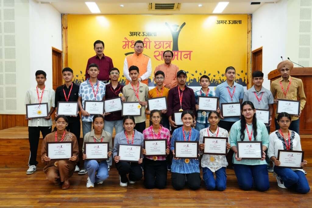 देहरादून। मुख्यमंत्री पुष्कर सिंह धामी ने मंगलवार को मुख्यमंत्री आवास स्थित मुख्य सेवक सदन में आयोजित मेधावी छात्र सम्मान समारोह में उत्तराखंड माध्यमिक शिक्षा बोर्ड के हाईस्कूल और इंटरमीडिएट के 75 मेधावी छात्र-छात्राओं को सम्मानित किया।