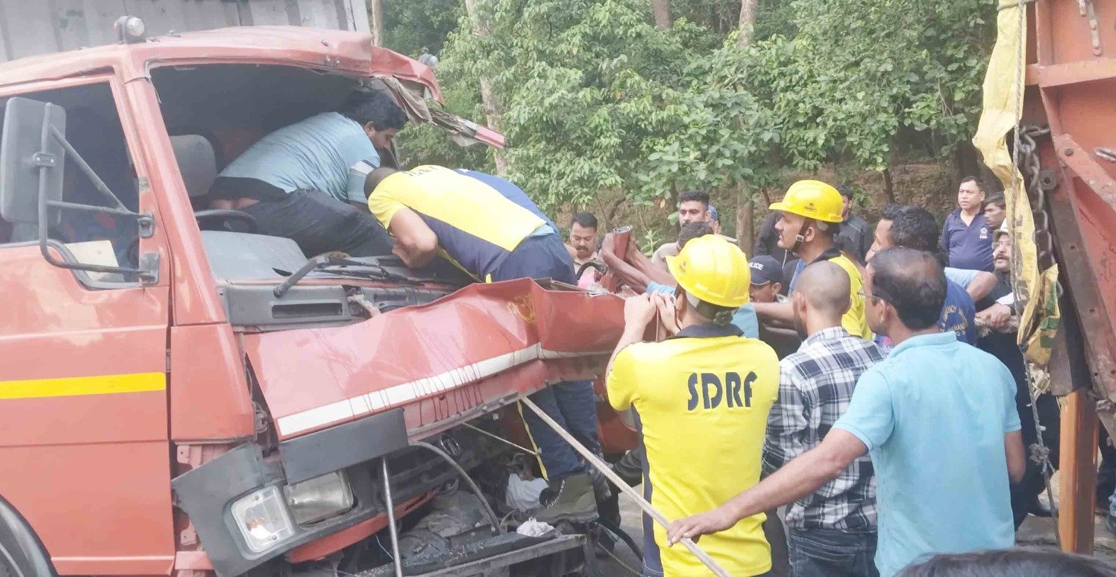 एसडीआरएफ टीम द्वारा तत्काल घटनास्थल पर पहुंचकर रेस्क्यू उपकरणों की सहायता से ट्रक को काटकर उसमें फंसे युवक मोनू (उम्र 28 वर्ष) को गंभीर घायल अवस्था में बाहर निकाला गया तथा एंबुलेंस के माध्यम से अस्पताल पहुंचाया गया।