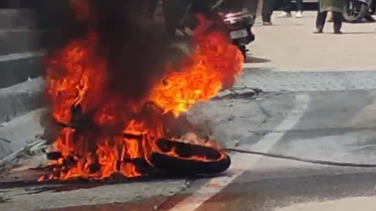 चलती बाइक बनी आग का गोला, सवार पति-पत्नी ने कूदकर बचाई जान