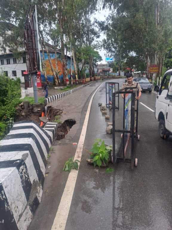 मालसी जू पुलिया के पास सड़क का किनारा धंसने के कारण मार्ग पर भारी वाहनों को किया प्रतिबंध