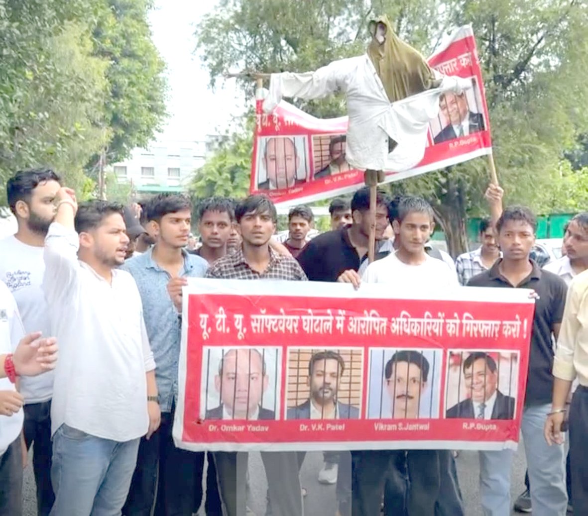 छात्रों ने पुनः मांग की शासन की समिति की रिपोर्ट के आधार पर कुलपति डॉ. ओमकार सिंह एवं परीक्षा नियंत्रक डॉ. वी. के पटेल को तुरंत बर्खास्त किया जाये एवं विश्विद्यालय के 8 करोड रु के घालमेल की रिकवरी के लिए संलिप्त अधिकारिओ के विरुद्ध इ.डी की भी मदद ली जाये, उन्होंने कहा कि शासन की प्रथम जाँच रिपोर्ट में दोषी साबित होने पर भी कुलपति अभी तक विश्विद्यालय में घूम रहे है एवं तकनीकी शिक्षा मन्त्री की मिली भगत एवं अंदर खाने लगातार सह दिए जाने से घोटाले के सबूतों से छेड़खानी कर रहे है। जो अब बिलकुल बर्दास्त नहीं किया जायेगा।