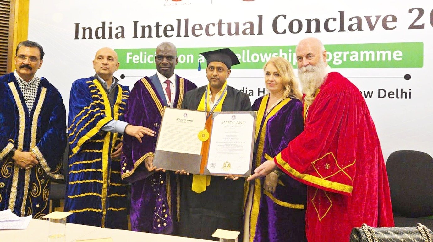 देहरादून । देहरादून के प्रमुख उद्यमी और सामाजिक परिवर्तनकर्ता शिवम वीरेंद्र अग्रवाल को हाल ही में मेरिलैंड स्टेट यूनिवर्सिटी, अमेरिका द्वारा बिज़नेस मैनेजमेंट और सोशल वर्क में मानद डॉक्टरेट की उपाधि से सम्मानित किया गया। यह प्रतिष्ठित सम्मान इंडिया इंटेलेक्चुअल कॉन्क्लेव 2025 के दौरान प्रदान किया गया, जो इंडिया हैबिटेट सेंटर, नई दिल्ली में आयोजित हुआ।