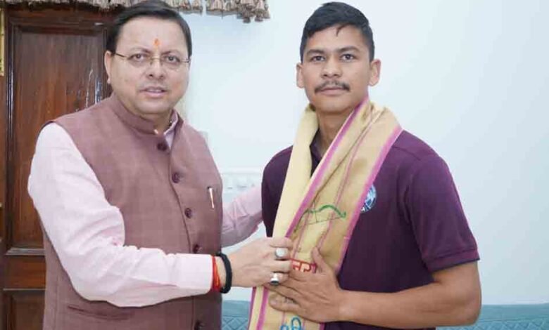 देहरादून। मुख्यमंत्री पुष्कर सिंह धामी से रविवार को मुख्यमंत्री कैंप कार्यालय में माउंट एवरेस्ट में सफलतापूर्वक चढ़ने वाले चंपावत निवासी वीरेन्द्र सिंह सामंत ने मुलाकात की। मुख्यमंत्री ने वीरेन्द्र को शुभकामनाएं देते हुए उनके उज्जवल भविष्य की कामना की।