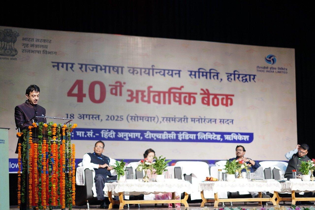 ऋषिकेश: आर. के. विश्नोई, अध्यक्ष एवं प्रबंध निदेशक, टीएचडीसी इंडिया लिमिटेड ने बताया कि नगर राजभाषा कार्यान्वयन समिति की 40वीं अर्धवार्षिक बैठक 18.08.2025 को टीएचडीसी इंडिया लिमिटेड, ऋषिकेश के रसमंजरी हॉल में आयोजित की गई। बैठक की अध्यक्षता नराकास, अध्यक्ष एवं टीएचडीसी के निदेशक (कार्मिक), शैलेन्द्र सिंह ने की । बैठक में समिति के सदस्य संस्थानों के प्रमुखों/प्रतिनिधियों एवं राजभाषा अधिकारियों ने बड़ी संख्या में प्रतिभागिता की। विदित ही है कि नराकास हरिद्वार देश की सबसे बड़ी नराकासों में से एक है जिसमें सदस्य संस्थानों की संख्या 69 है। इस समिति में रुड़की, हरिद्वार, ऋषिकेश एवं पर्वतीय क्षेत्र में स्थित केंद्र सरकार के संस्थान एवं कार्यालय सम्मिलित हैं।