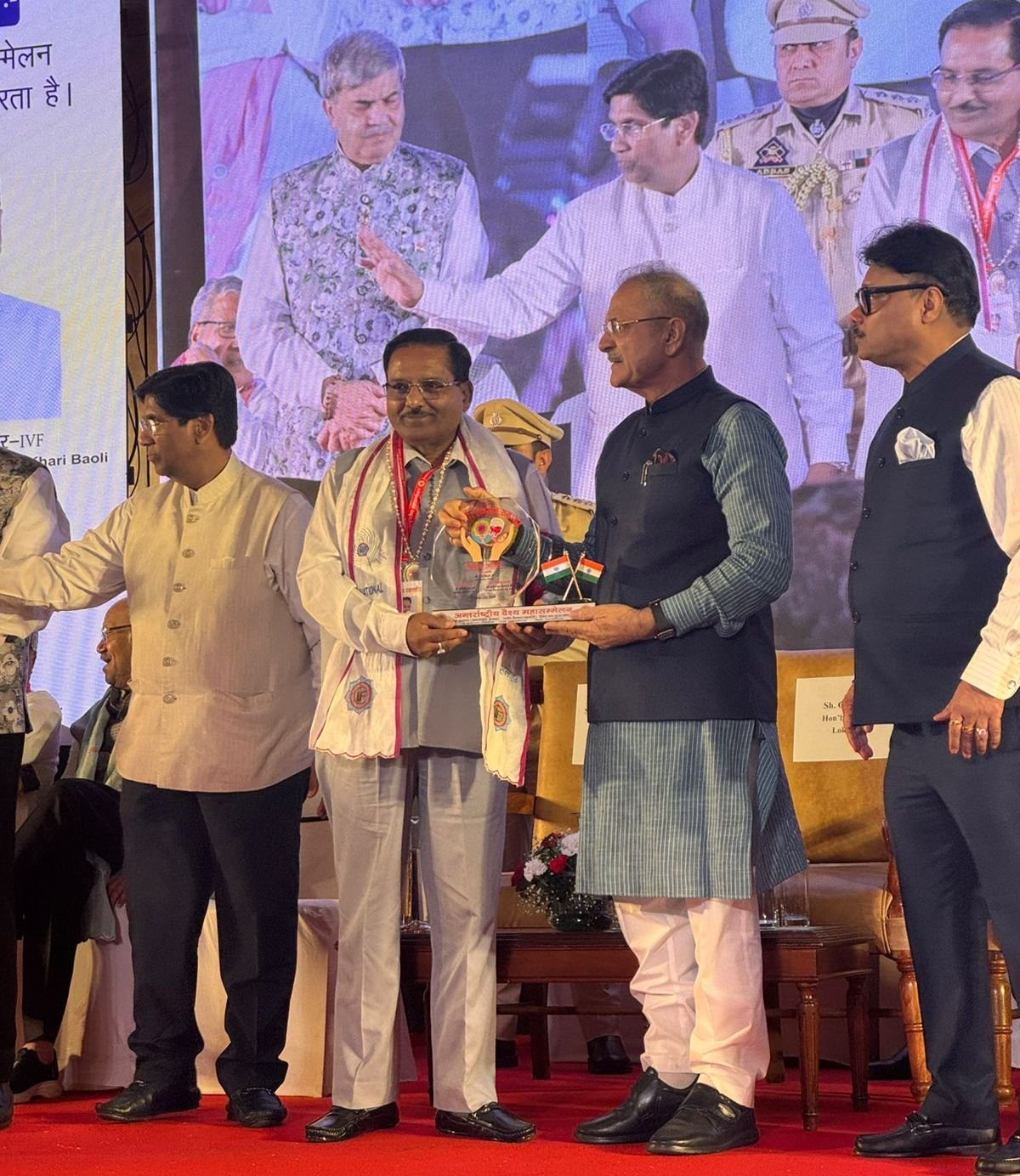 देहरादून। उत्तराखंड में सर्वाधिक 131 बार रक्तदान करने पर आईवीएस द्वारा आयोजित महारक्त वीरों के सम्मानार्थ आयोजित समारोह में मुख्य अतिथि लेह लद्दाख के उपराज्यपाल कविंद्र गुप्ता द्वारा योगेश अग्रवाल को दिल्ली में महारक्तवीर सम्मान से सम्मानित किया गया। देहरादून, इंटरनेशनल वैश्य फेडरेशन द्वारा देशभर के रक्तदानियों और महारक्तदानियों को सार्वजनिक रूप से सम्मानित करवाने हेतु अशोका होटल, देहली में आयोजित समारोह में बतौर मुख्य अतिथि लेह लद्दाख के राज्यपाल कविंद्र गुप्ता द्वारा देवभूमि उत्तराखंड में सर्वाधिक 131 बार रक्तदान (रक्त की कमी से जूझते रोगियों की जीवन रक्षार्थ) करने पर देवभूमि उत्तराखंड के योगेश अग्रवाल को सम्मानित किया गया।