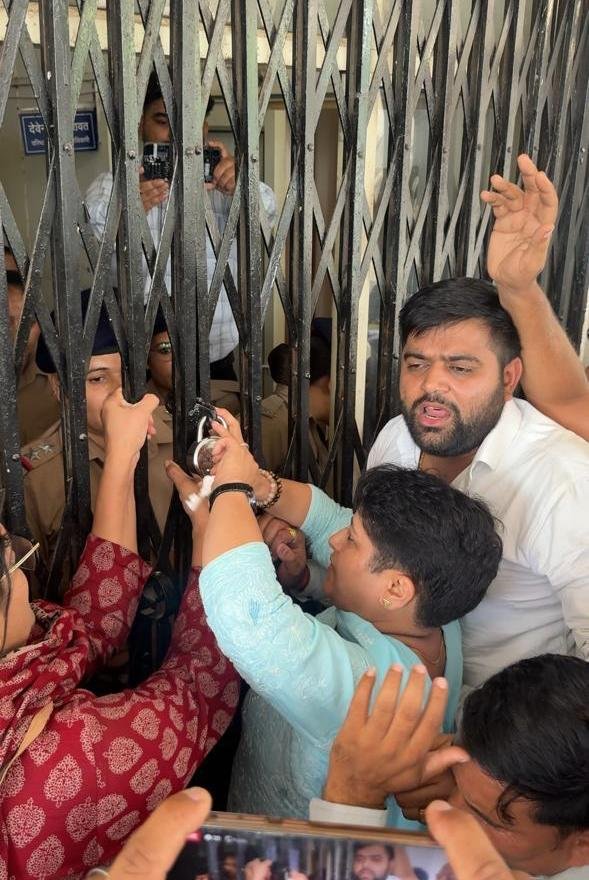 महिला कांग्रेस अध्यक्ष के नेतृत्व में किया लोक निर्माण कार्यालय का घेराव, तालाबंदी की