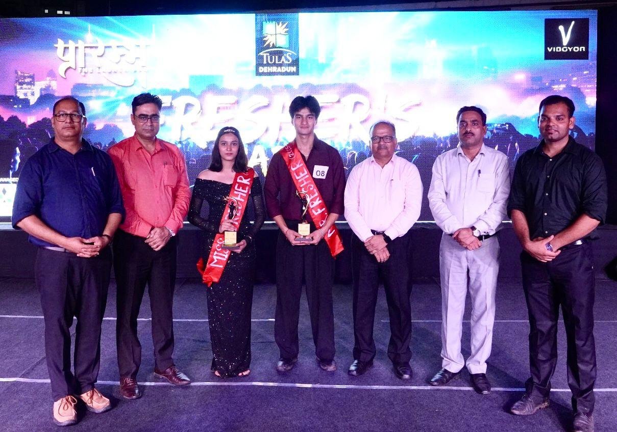 यह खिताब अभिजीत सिंह (बी. टेक सीएसई) और निहारिका शर्मा (बीबीए) को मिला। सीनियर छात्रों ने भी अपने जूनियर्स के लिए विशेष प्रस्तुतियाँ दीं। वहीं मिस्टर एवं मिस फ्रेशर का ताज शुभम सिंह (बीबीए) और तनुश्री (बी. टेक सीएसई) को पहनाया गया।कार्यक्रम में डॉ. शैलेंद्र कुमार तिवारी (निदेशक, तुलाज़ इंस्टिट्यूट), डॉ. दीपक नंदा (निदेशक, तुलाज़ इंस्टिट्यूट ऑफ़ फ़ार्मेसी), डॉ. निशांत सक्सेना (अतिरिक्त निदेशक), डॉ. विजय कुमार उपाध्याय (रजिस्ट्रार), और डॉ. संजय शर्मा (डीन स्टूडेंट वेलफेयर) सहित विभिन्न विभागाध्यक्षों और संकाय सदस्यों ने उपस्थिति दर्ज कर छात्रों को बधाई दी।