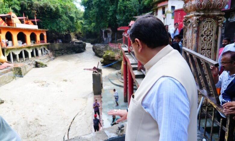 देहरादून। मुख्यमंत्री पुष्कर सिंह धामी ने गुरुवार को टपकेश्वर महादेव मंदिर क्षेत्र में अतिवृष्टि से प्रभावित स्थल का निरीक्षण किया। अतिवृष्टि के कारण मंदिर के अंदर जलभराव के साथ ही मलबा आ गया था, मलबा हटाने का कार्य अब पूर्ण हो चुका है। इस अवसर पर मुख्यमंत्री ने मंदिर के पुजारियों और स्थानीय लोगों से बातचीत भी की। निरीक्षण के उपरांत मुख्यमंत्री ने टपकेश्वर महादेव मंदिर में जलाभिषेक कर प्रदेश एवं प्रदेशवासियों की सुख, शांति और समृद्धि की कामना की।