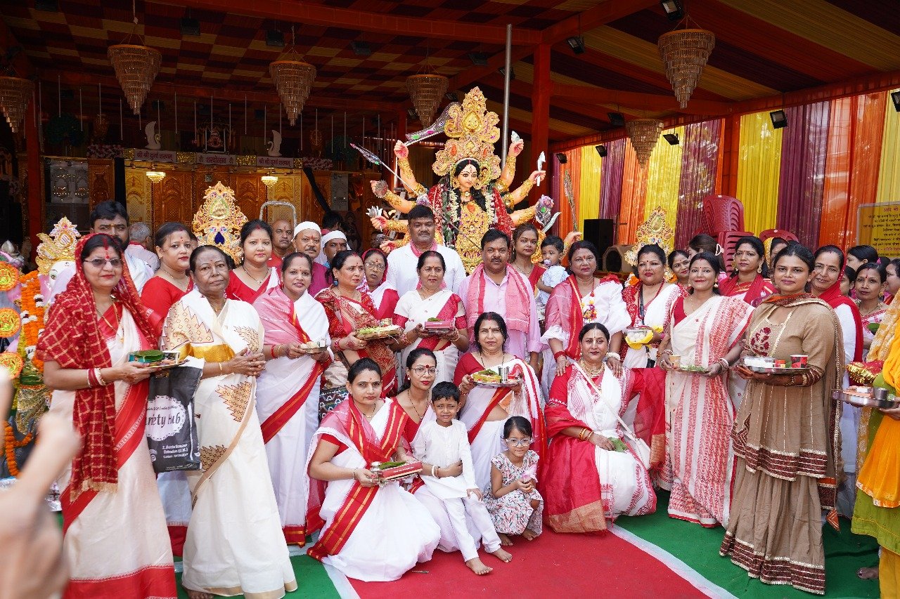 आज के कार्यक्रम में दशमी पूजा बिसर्जन एवं देवी ढौलाय गमन बीरबार 2 अक्टूबर 025 7ः45 सिन्दूर खेला 8रू30 ,बिसर्जन के लिए हरिद्वार प्रस्थान 10 बजे ,शान्ति जल एवं बिजय सम्मेलन 8 बजे रात्रि कालिन्दी पार्क कांवली