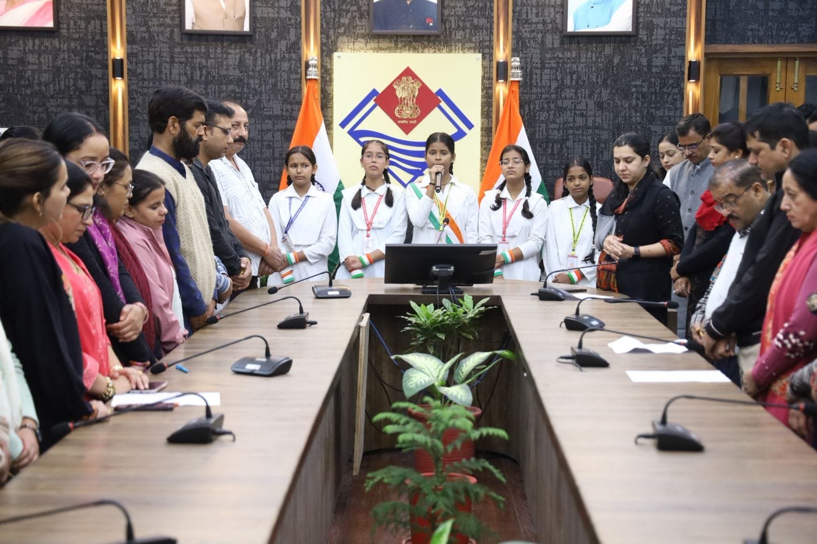 देहरादून: भारत वर्ष के राष्ट्रगीत ‘‘वंदे मातरम्’’ के 150 वर्ष पूर्ण होने के अवसर जनपद के सभी सरकारी, गैर सरकारी कार्यालयों, शिक्षण संस्थानों एवं सामाजिक संगठनों में प्रातः 10 बजे ‘‘वंदे मातरम्’’ का गायन किया गया। जिलाधिकारी सविन बंसल के दिशा निर्देशन में जिला कार्यालय में उप जिलाधिकारी अपूर्वा सिंह की मौजूदगी में क्लेक्ट्रेट परिसर के समस्त अधिकारियों, कार्मिकों एवं श्री गोर्वधन सरस्वती विद्या मंदिर की छात्राओं की उपस्थिति में वंदे मातरम् का सामूहिक गायन किया गया। इस मौके पर देशभक्ति से ओत-प्रोत वातावरण में अधिकारीगण, कार्मिक, शिक्षक, विद्यार्थी सभी उत्साहपूर्वक शामिल हुए।