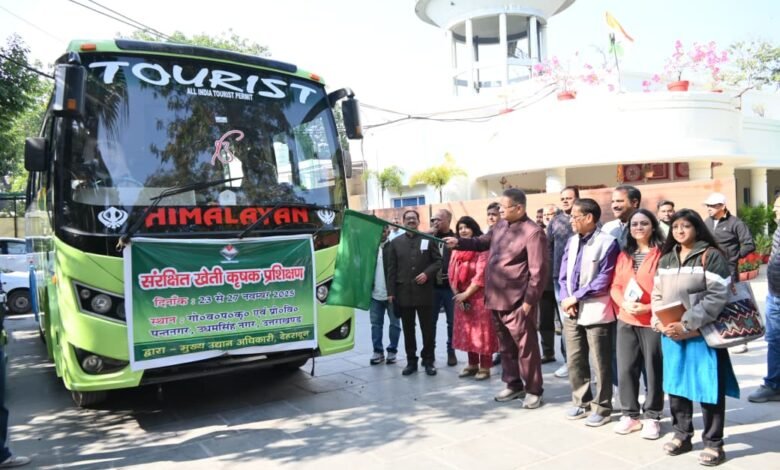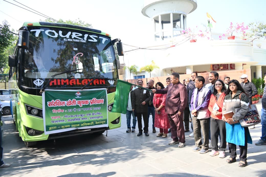 देहरादून। प्रदेश के कृषि मंत्री गणेश जोशी ने आज हाथीबड़कला स्थित कैंप कार्यालय से नाबार्ड योजनान्तर्गत स्थापित पॉलीहाउस के 05 दिवसीय प्रशिक्षण हेतु जनपद देहरादून के चयनित 28 कृषकों के दल को गोविंद बल्लभ पंतनगर विश्वविद्यालय के लिए हरी झंडी दिखाकर रवाना किया।