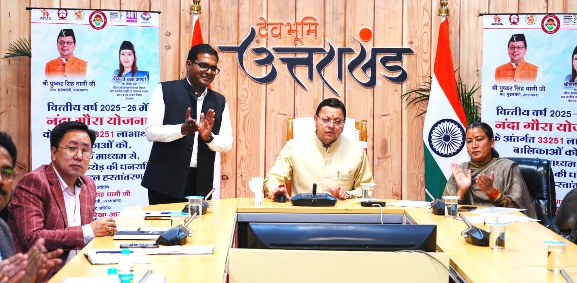 देहरादून । मुख्यमंत्री पुष्कर सिंह धामी ने कहा है कि प्रदेश सरकार बेटियों के जन्म से लेकर उनकी शिक्षा, सुरक्षा और रोजगार को बढ़ावा देने के लिए संकल्पबद्ध होकर कार्य कर रही है। मुख्यमंत्री ने गुरुवार को नंदा गौरा योजना के तहत वित्तीय वर्ष 2025-26 के लिए प्रदेश की 33,251 बालिकाओं के खाते में डीबीटी के माध्यम से 1,45,93.00 (एक अरब पैंतालीस करोड़ तिरान्नबे लाख रुपए) की धनराशि हस्तांतरित की।