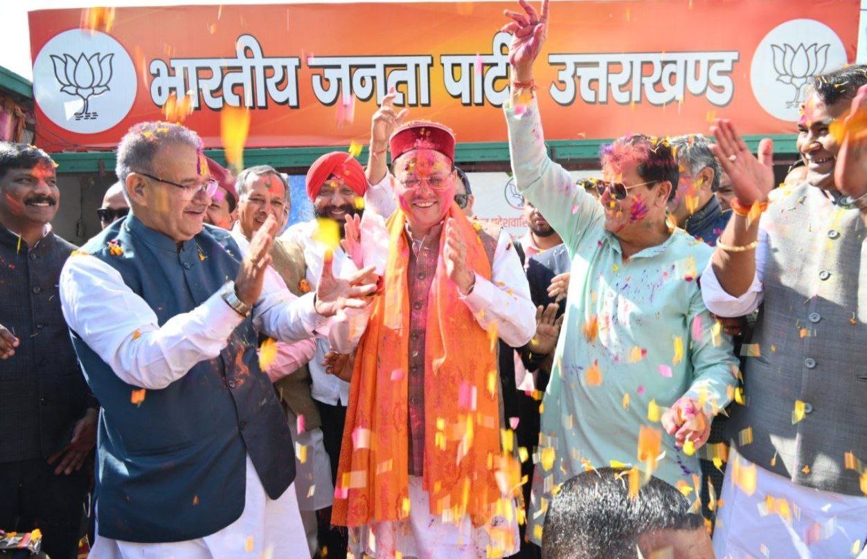 देहरादून। कैबिनेट मंत्री गणेश जोशी ने मुख्यमंत्री आवास एवं भाजपा प्रदेश कार्यालय में आयोजित होली मिलन कार्यक्रम में प्रतिभाग किया। इस अवसर पर उन्होंने मुख्यमंत्री पुष्कर सिंह धामी सहित भाजपा परिवार के सभी कार्यकर्ताओं को अबीर-गुलाल लगाकर होली की हार्दिक बधाई एवं शुभकामनाएं दीं।