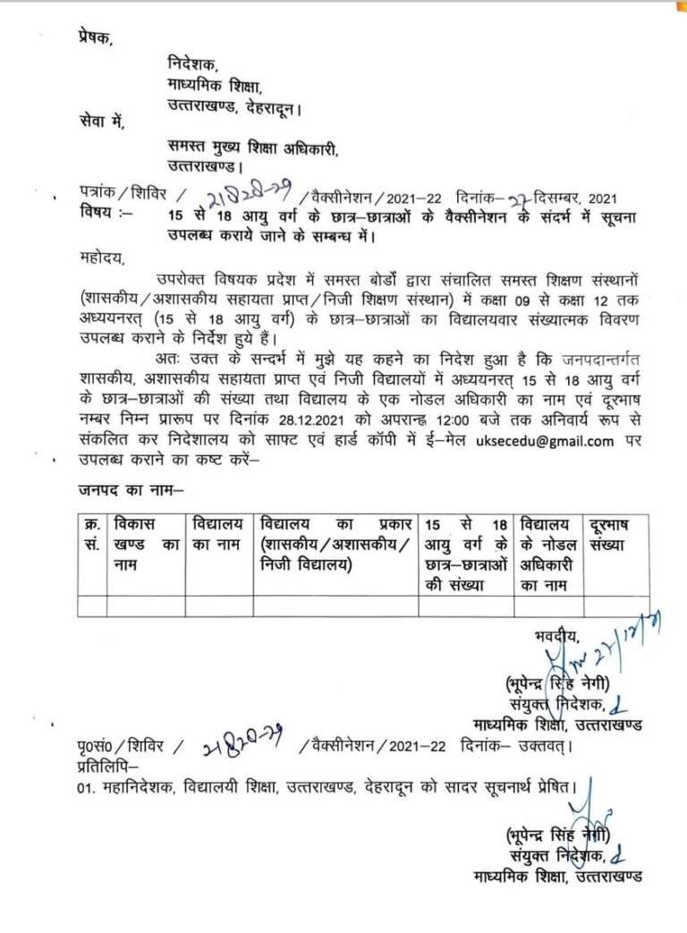 उत्तराखण्ड के 6.28 लाख किशोरों का वेक्सीनेशन 7 दिन में कर देगी…