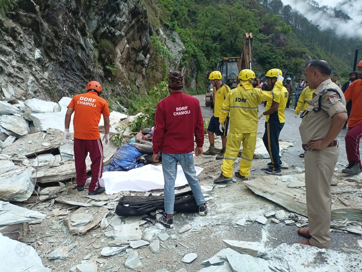 एक मोटरसाइकिल के ऊपर बोल्डर गिरने से 2 युवकों की मौत, SDRF ने किए शव बरामद