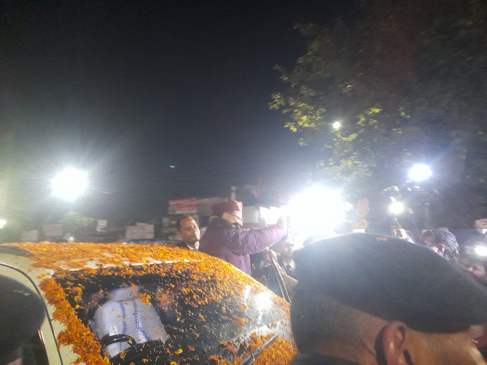 यूसीसी: उत्साहित भाजपाईयों ने सीएम पर की पुष्प वर्षा